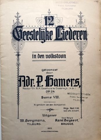 Hamers, Adriaan P.: - 12 geestelijke liederen in den volkstoon. Op. 24. Serie VIII