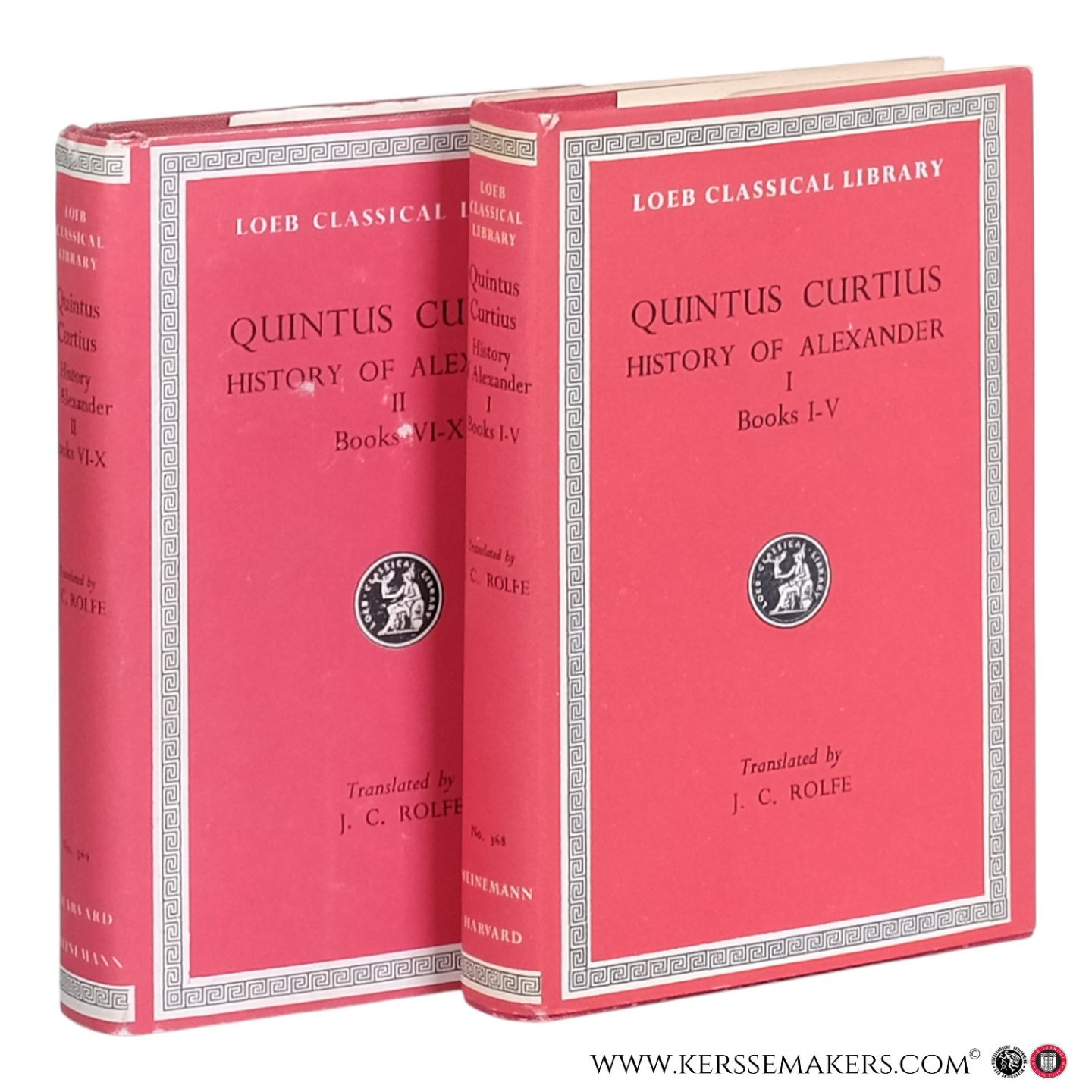 vol. II with slight dent and faint trace of moisture to upper rear; top edges spotted, paper slightly toned, otherwise very good. See picture. Loeb Classical Library bilingual edition of Quintus Curtius Rufus’ 'Historiae Alexandri Magni', an important Latin source on the life and campaigns of Alexander the Great, with facing English translation by J.C. Rolfe. ISBN 0674994051 (vol. I), 0674994078 (vol. II)