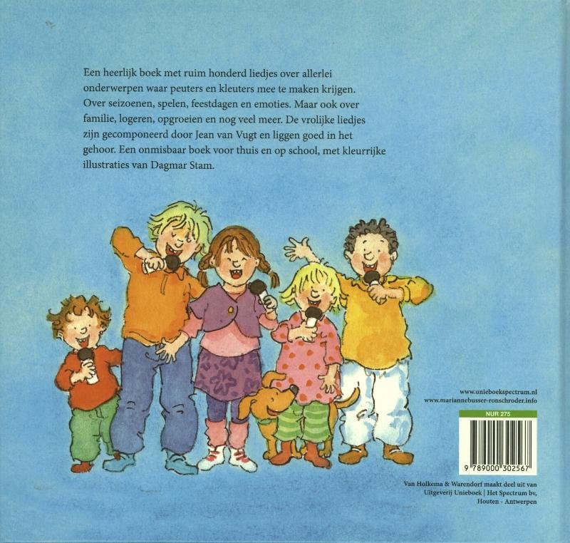 Na dertien drukken verschijnt Het grote liedjesboek als heruitgave met splinternieuwe, frisse illustraties van Dagmar Stam. In deze succesvolle bundel staan meer dan honderd liedjes over allerlei onderwerpen waar jonge kinderen mee te maken krijgen. Over logeren, leren fietsen, seizoenen, feestdagen of poppen en beren. Maar ook over lezen en schrijven, gezinsuitbreiding, verliefd zijn en emoties. De melodieën zijn gecomponeerd door Jean van Vugt en liggen goed in het gehoor.