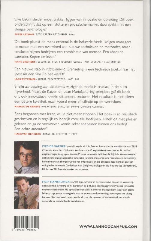 Op zoek gaan naar oplossingen uit een andere sector. Dat is waar grenzeling voor staat. Dankzij sectoroverschrijdende innovatie moet je als bedrijf niet telkens weer het warm water opnieuw uitvinden. Zoekt naar innovatieve oplossingen, op basis van bestaande kennis en technologie. Grenzeling durft te denken buiten de sector. Unieke combinatie van psychologische inzichten met technologische verbeteringen Introduceert nieuwe taal welke leidt tot innovatief denken en gedrag. Opgevat als een businessroman met korte hoofdstukken (threads), wat de leesbaarheid en herkenbaarheid aanzienlijk vergroot.Op zoek gaan naar oplossingen uit een andere sector. Dat is waar grenzeling voor staat. Dankzij sectoroverschrijdende innovatie moet je als bedrijf niet telkens weer het warm water opnieuw uitvinden. Zo is het patroon dat tandartsen bij het frezen gebruiken, misschien ook wel bruikbaar in de staalindustrie? Je bent dus niet de eerste in de wereld die een specifiek probleem wil oplossen. Je concurrenten passen ook alle methodes zoals Lean en 6 sigma toe en spreken met dezelfde leveranciers van machines en grondstoffen. Grenzeling. Durven denken buiten de sector, toont in een toegankelijke romanvorm hoe je toch nog verbetering kan vinden die verschilt van de gekende oplossingen. Door zelf, aan de hand van enkele systhematische technieken die in het boek aan bod komen, op zoek te gaan naar verbeteringen, spring je verder dan ooit. Grenzeling is opgevat als een roman en vertelt het verhaal van een jonge proces engineer, Regine. Ze komt een aantal belemmeringen tegen tijdens haar zoektocht naar bedrijfsverbeteringen. Regine ervaart de vernieuwende kracht van het functioneel modelleren, een volgende generatie tijdstudie, Idea Sensitive Area, nieuwe inzichten in het kwaliteitsdenken,.... Ze laat het bedrijf groeien naar een grotere maturiteit door zich bewust te zijn van de begrippen voorgrond, legaten en parentificatie. Dit boek laat de lezer nadenken over technologische verbeteringen zonder voorbij te gaan aan de nodige psychologische inzichten die nodig zijn bij het implementeren van deze verbeteringen.