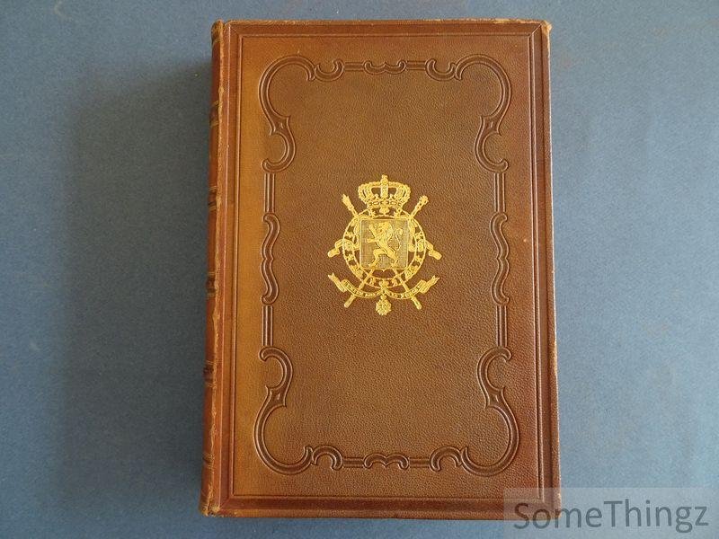 | Bijzonderheden: | Relié, reliure en plein cuir de Auguste-François Rensing (dos a 5 nerfs, monogramme du roi Leopold II au dos, blason du Royaume de Belgique au première et dernière couverture), 565pp., 18.5x26cm., sur 2 colonnes, en français et en latin, en b... |