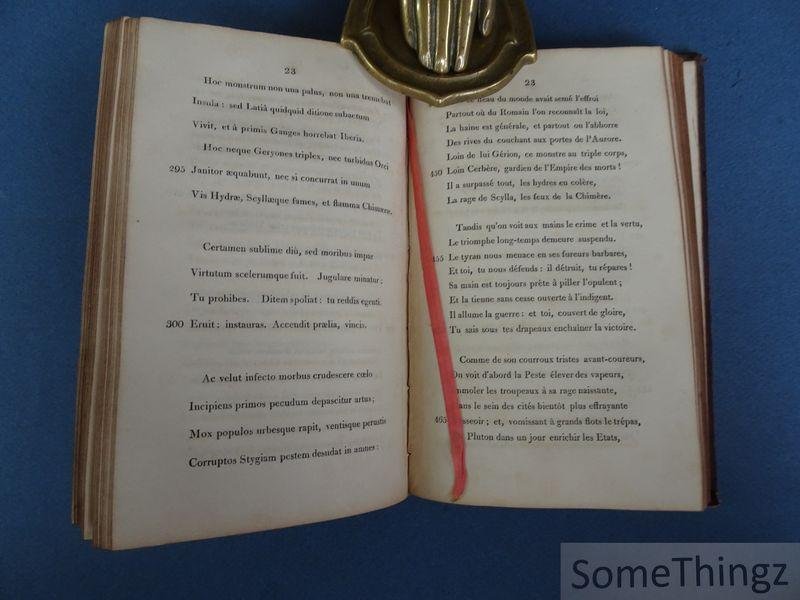 Cet ouvrage offre une version en vers français de l'Art poétique d'Horace, avec le texte original latin mis en regard, suivie de la seconde édition du poème « La Chute de Rufin » de Claudien, également traduit en vers français. Ces deux pièces classiques dialoguent : Horace enseigne les principes de la poésie - l'harmonie, la mesure, l'unité - tandis que Claudien narre en deux chants la ruine morale et politique de Rufin, figure tragique. Les amateurs de poésie latine, de belles traductions versifiées, et les érudits trouveront ici un bel exemplaire ancien, soigneusement relié, permettant d'étudier le style, la métrique et la pensée des deux auteurs. Cette exemplaire avec une belle reliure contemporaine était donné par l'auteur à Mme le chevalier Collard des Cherre.