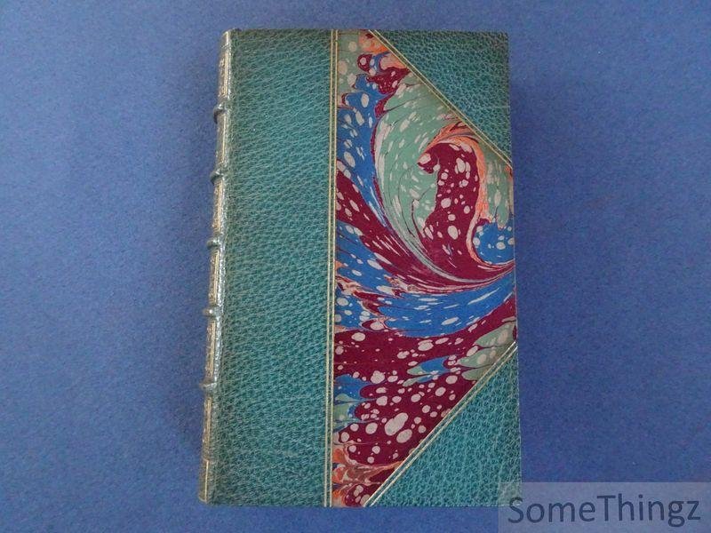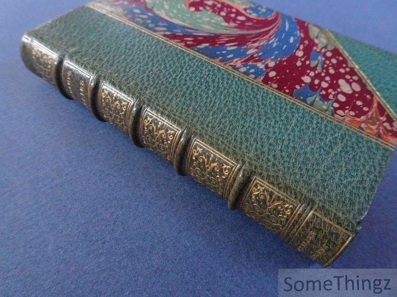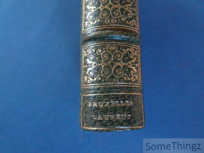 | Bijzonderheden: | Relié, signé au dos: 'Bruxelles Laurent', demi-cuir, dos a 5 nerfs, décorations et titre dorés au dos, plats marbrées, 348pp., 7.5x11.5cm., en très bon état. Publication rare avec une reliure superbe. |