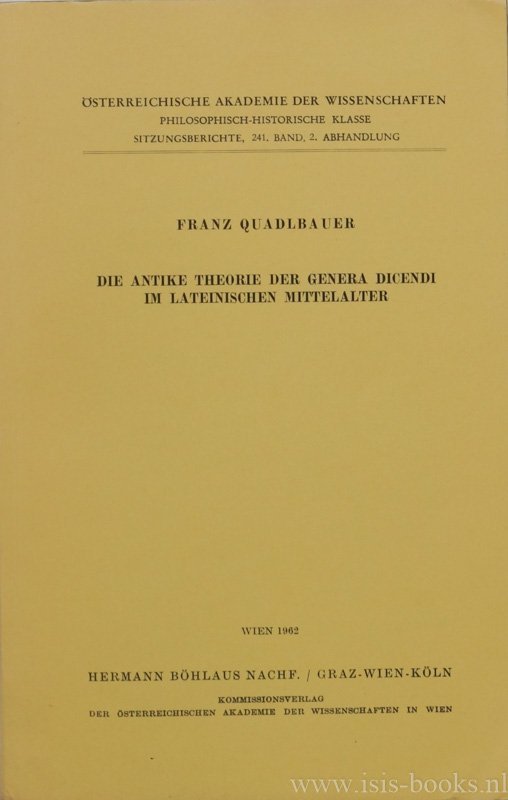 QUADLBAUER, F. - Die antike Theorie der genera dicendi im latei
