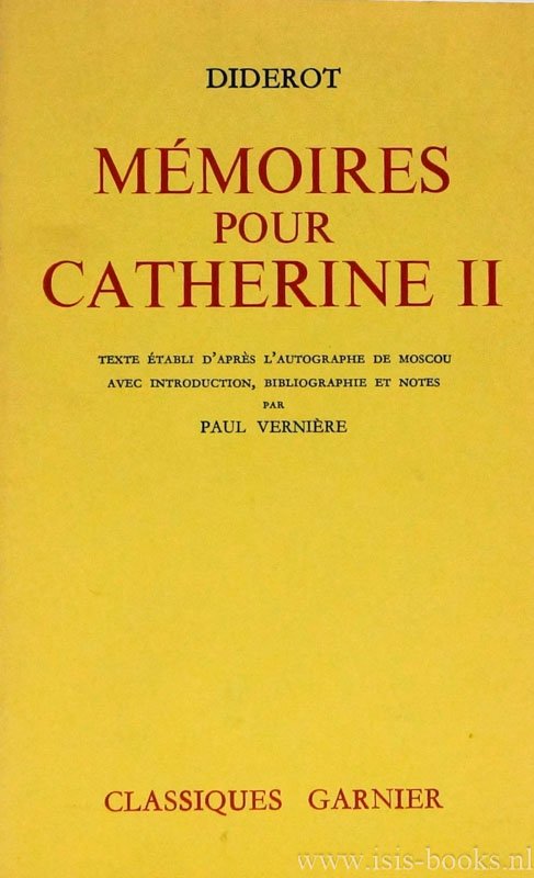 DIDEROT, D. - Mémoires pour Catherine II. Texte établi d'apres