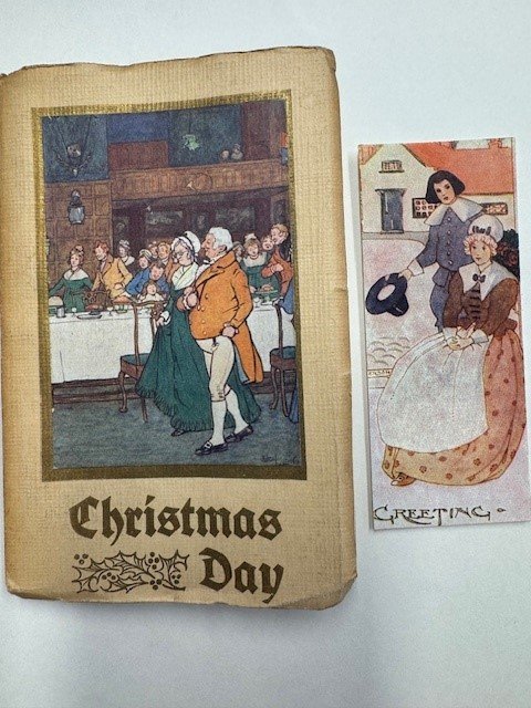 Christmas Day. London, Hodder and Stoughton, [after 1910?]. 44pp. and 6 plates by Cecil Aldin. With Washington Irving's text illustrated by Cecil Aldin. All 6 tipped in colour plates as called for; the frontispiece has a slight crease to the extreme lower right hand corner and the second plate has additional creases in the middle. No inscriptions. With a loose greetingscard by Aldin with the text: "From Cor to aunt Frena" (possible Fock). Reasonable state.