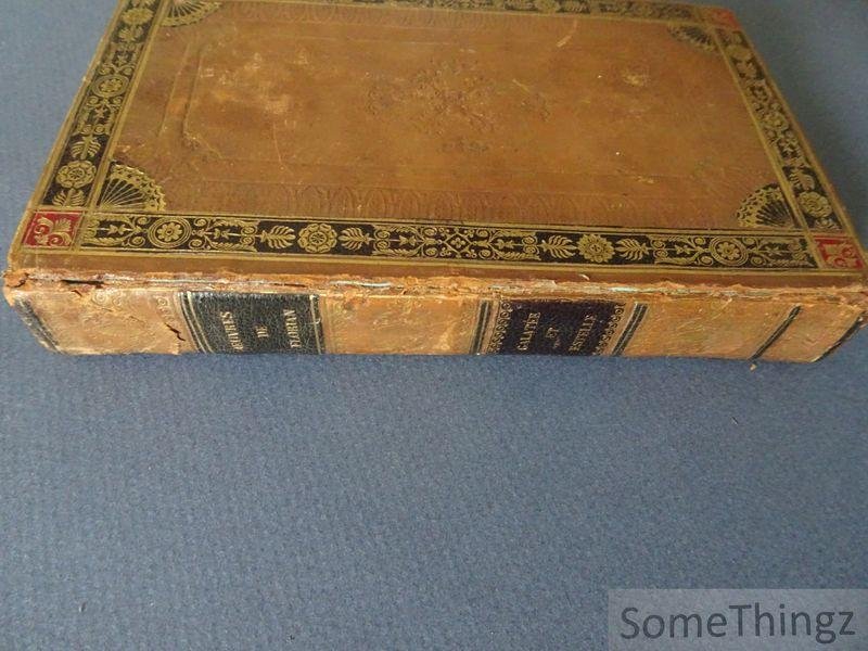 | Bijzonderheden: | Relié (plein cuir avec décorations en relief sur les plats, et des encadrements en reliéf avec motifs florales dorées, tranches dorées), 137+172pp., avec 8 gravures hors-texte, 11x18cm., état pauver / acceptable (reliure restauré de façon ... |