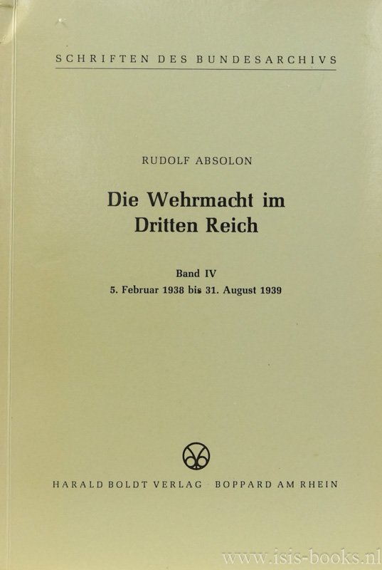ABSOLON, R. - Die Wehrmacht im dritten Reich. Band IV 5. Februa