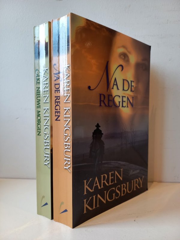 In Elke nieuwe morgen houdt paardrijdster Ali angstvallig geheim dat ze lijdt aan taaislijmziekte. Ze wil met haar paard Ace geschiedenis schrijven nu het nog kan, want iedere longontsteking kan haar fataal zijn. Maar wanneer de stoere rodeorijder Cody haar geheim achterhaalt, laat ze hem aarzelend toe in haar wereld. Hun tijd samen is kort, en elke nieuwe morgen is oneindig kostbaar. Is hun liefde de hoogste prijs waard? In Na de regen moet Cody alleen verder. Vol verdriet trekt hij weer in bij zijn ouders en bij Carl Joseph, zijn broertje met het syndroom van Down. Tot zijn verbijstering ontdekt Cody dat zijn broertje zich voorbereidt op een zelfstandig leven. Uit angst om opnieuw een geliefde te verliezen, probeert Cody te voorkomen dat Carl Joseph zijn veilige omgeving verlaat. Maar dan kent hij Carls begeleidster Elle nog niet. Zij laat haar plannen niet zomaar dwarsbomen. Karen Kingsbury is de absolute nummer 1 van christelijke romanschrijvers in Amerika. Van haar ruim veertig romans zijn al meer dan tien miljoen exemplaren in omloop. Ze won talloze prijzen, en sommige van haar boeken worden zelfs verfilmd. Karen krijgt stapels brieven en e-mails van lezers. Hierdoor weet ze dat haar boodschap van hoop al vele levens veranderde. Karen Kingsbury behaalde in 1986 haar diploma in de journalistiek en werkte een tijdje als sportverslaggever. Daarna schreef ze artikelen voor de voorpagina van The Daily News. Haar eerste boek gaat over een moordzaak die ze in die tijd als journalist heeft gevolgd. Naast auteur is Karen een veelgeprezen spreker op vrouwenbijeenkomsten. Verder schrijft ze af en toe liedjes. In haar vrije tijd is ze graag bij haar gezin. Ze woont in de Pacific Northwest in Amerika met haar man en zes kinderen, waaronder drie geadopteerde jongens uit Haïti. |