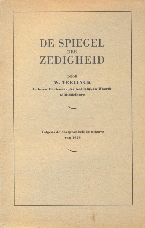 De Spiegel der Zedigheid door W. Teelinck, in leven Bedienaar des Goddelijken Woords te Middelburg.
