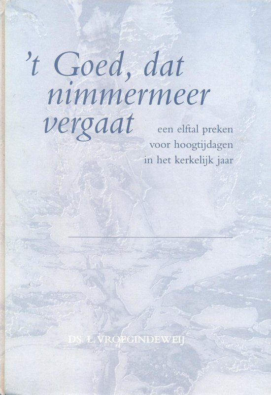 't Goed dat nimmermeer vergaat van ds. L. Vroegindeweij bevat een elftal preken voor hoogtijdagen in het kerkelijk jaar.