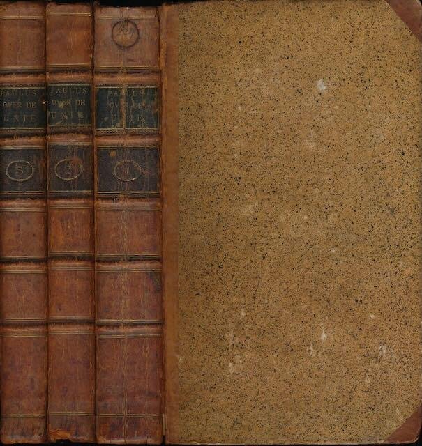 Halfleer. 'Voorafgaand aan de vertaling van 't latynsche werk van Mr. N. Bondt, bestaande (behalven de opdragt en voorrede) in de verklaring der inleiding, en van 't eerste, tweede en derde Artikel der Unie van Utrecht' In deel 3 achterin een kleine watervlek doorgedrukt op enige bladzijden, sent as parcel post