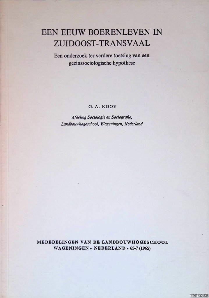 Kooy, G.A. - Een eeuw boerenleven in Zuidoost-Transvaal: een on