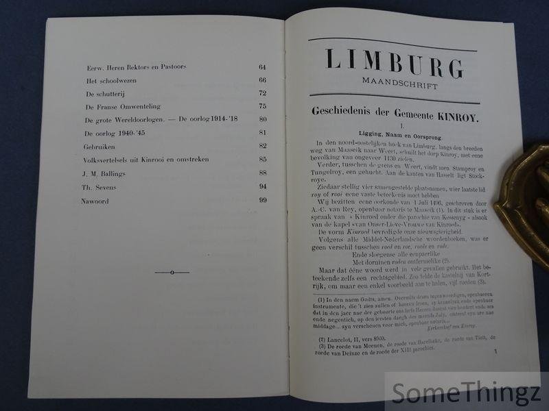| Titel: | Aantekeningen over het verleden van Kinrooi. Aangevuld met: 'Geschiedenis der gemeente Kinroy' door Theodoor Sevens. |