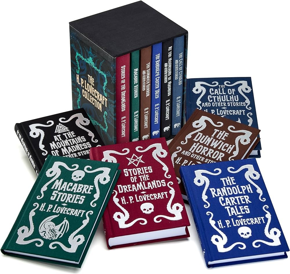 This beautiful slipcased collection set brings together H.P. Lovecraft's most celebrated works, divided into six clothbound volumes.\n\nSaid to be inspired by his own nightmares, Lovecraft's writing astounds and terrifies in equal measure. His fiction marry gothic horror with cosmic fantasy, from his early macabre stories to his tales of the dreamlands, and of course, his famous Cthulhu novellas, and have influenced authors from Stephen King to Neil Gaiman.\n\nWith contemporary embossed cover-designs, matching color endsheets and a hardcover slipcase, these complete and unabridged tales make the perfect gift or collectible for any fan of the weird and wonderful.\n\nIncludes:\n• At the Mountains of Madness\n• The Dunwich Horror\n• The Call of the Cthulhu\n• The Shadow over Innsmouth\n• Polaris\n• The Color Out of Space\n• Rats in the Walls\n\nABOUT THE SERIES: The Arcturus Collector's Classics series are high-quality, clothbound box-sets of classic works of literature. With elegant embossed cover-designs and colored endpapers, these editions make wonderful gifts or collectibles to treasure forever.