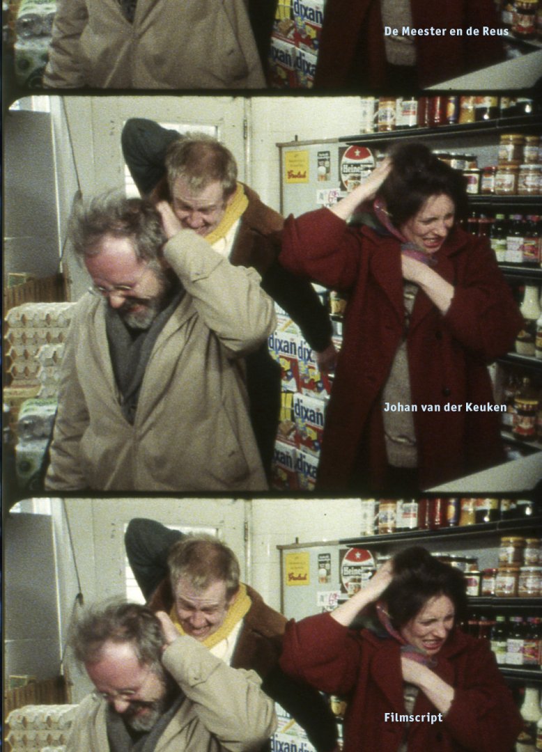 De publicatie is een integraal uitgegeven filmscript (compleet getekend storyboard met handgeschreven en getypte tekst) voor de film De Meester en de Reus door Johan van der Keuken. Het cahiersteek gebonden boek omvat 48 pagina’s en heeft in de stofomslag een verkleinde Franse versie en Engelse versie zodat een internationaal publiek het NL script kan nalezen.\n\nDe Meester en de Reus (1980, 70 minuten)\nIs een film tussen documentaire en fictie in, met als thema de rivaliteit die met scheppen gepaard gaat: een god schept de aarde en een tweede vernietigt deze om er een andere betere wereld van te maken. In deze film komen mythe en realiteit samen en worden twee verschillende werelden getoond: enerzijds die van een man en een vrouw in een afbraakwijk in Amsterdam en anderzijds het leven diep in de Tunesische woestijn. \n\nDe film (1980), camera en regie Johan van der Keuken, is gemaakt in samenwerking met Claude Ménard. Geluid Menno Euwe en Noshka van der Lely en muziek van Willem Breuker. Produktie door The Movies Filmproduction.