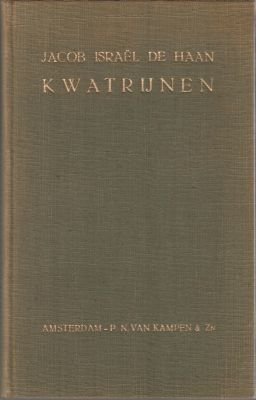 Meer info: Amsterdam, P.N. van Kampen en Zoon, 1924. Verguld linnen. (4), 188 p. Niet afgesneden. 1e druk. Naam voorin: 'T. Heemstok'? Band wat verbleekt, van binnen mooi. Dit ontroerende meesterwerk verscheen slechts enkele dagen voor de moord op dichter Jacob Israël de Haan door een fanatieke zionist.