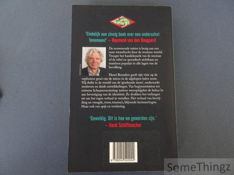 De eeuwenoude tattoo is bezig aan een ware triomftocht door de westerse wereld. Vroeger het handelsmerk van de zeeman of de rebel en sporadisch zichtbaar, nu mateloos populair in alle lagen van de bevolking. Henri Beunders geeft zijn visie op de explosieve groei van de tattoo in de afgelopen halve eeuw. Hij duikt in de wereld van de ?getekende mens?, onderzoekt motieven en duidt ontwikkelingen. Van beginnerstattoo tot extreme lichaamsversiering: tattoos weerspiegelen de behoefte aan bevestiging van de identiteit. Ze drukken het verlangen uit om het eigen verhaal te vertellen. Het verhaal van bevrijding en vreugde, rouw, trauma?s, blijvende herinneringen. Maar ook van spijt en verslaving. Het boek is een uitgebreide cultuurhistorische exploratie van tattoo-cultuur in de westerse wereld, met nadruk op Nederland en België. Henri Beunders analyseert hoe tattoos van sociale stigma hebben getransformeerd naar mainstream lichaamstaal. Hij bespreekt symboliek, identiteitsvorming, artistieke ontwikkeling, commercie en maatschappelijke reflectie.