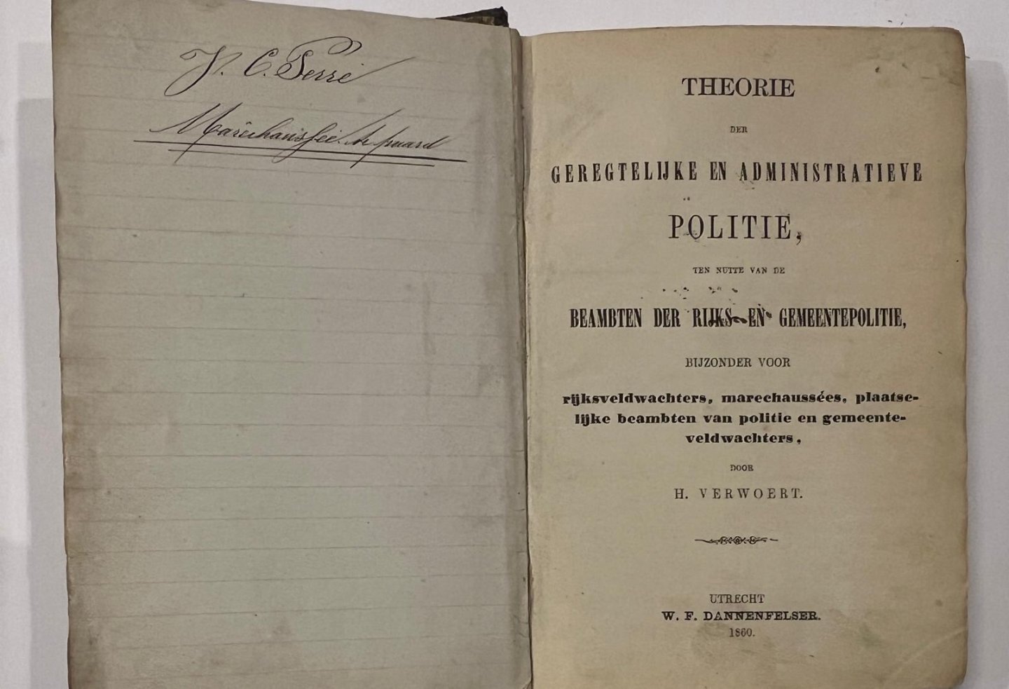 | Titel: | Legal 1860 | Theorie der geregtelyke en administratieve politie, ten nutte van de beambten der rijks- en gemeentepolitie, bijzonder voor rijksveldwachters, marechaussees, (...) en gemeenteveldwachters. Utrecht, Dannenfelser, 1860. |