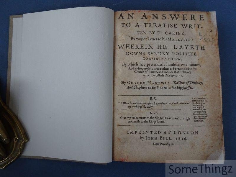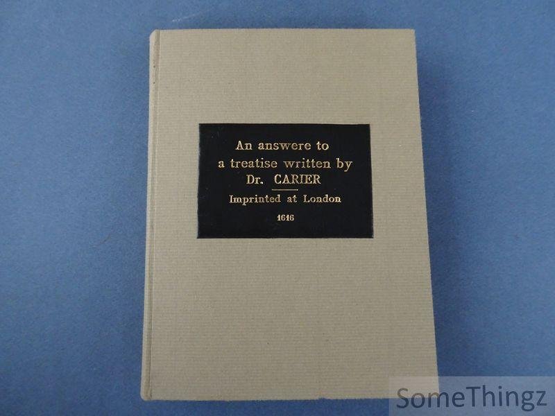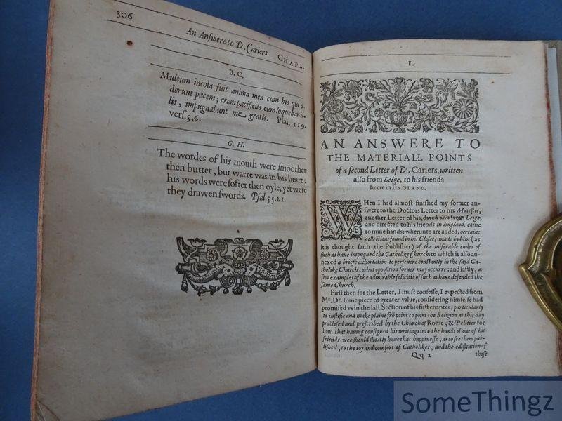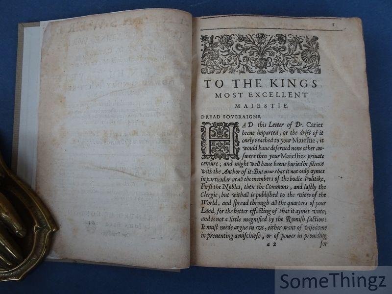 | Titel: | An answere to a treatise written by Dr. Carier by way of a letter to his Maiestie wherein he layeth downe sundry politike considerations, by which hee pretendeth fimselfe was moved, and endevoureth to move others to be reconciled to the Church... |