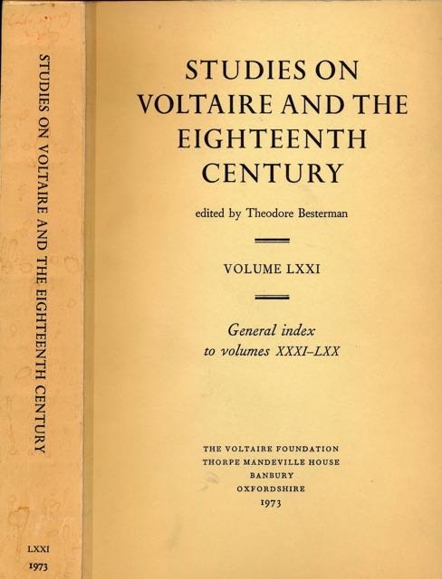 | Titel: | Studies on Voltaire and the Eighteenth Century Volume LXXI. General index to volumes XXXI-LXX |