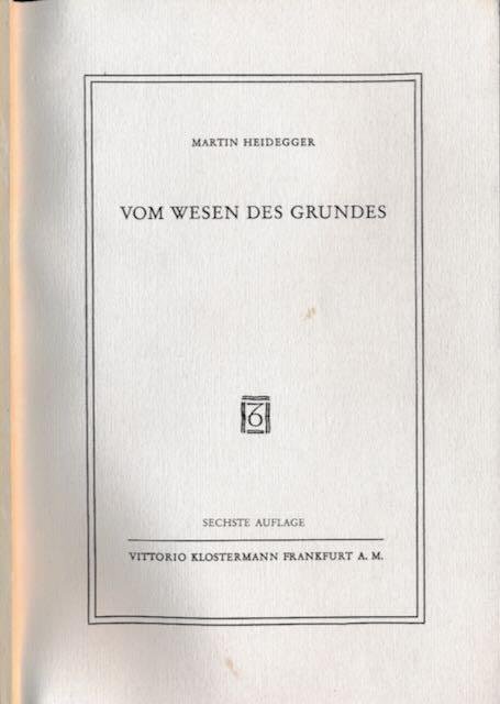 Heidegger, Martin - Vom Wesen des Grundes