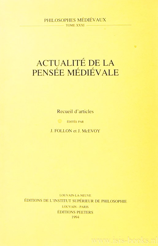 FOLLON, J., MCEVOY, J., (EDS.) - Actualité de la pensée médiéva