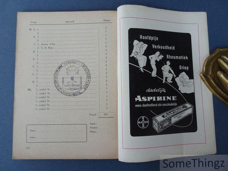 | Bijzonderheden: | Softcover, 22pp., 15x20cm., ills. in z/w., in slechte staat (rug met plakband hersteld, frontcover beschadigd, etiket op frontcover, bibliotheekstempel op eerste en laatste pagina: zie foto's). Schaars. |