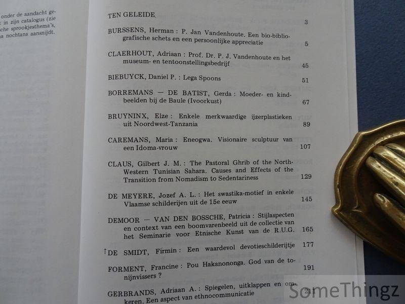 Deze uitgave is een "memorialis" ter nagedachtenis van P.J. Vandenhoute (1913-1978), professor in Kunstgeschiedenis / Etnische Kunst aan de Rijksuniversiteit te Gent. De bundel bevat bijdragen van collega's, een levens- en loopbaandocumentatie, en analyses van zijn wetenschappelijke betrokkenheid en invloed.