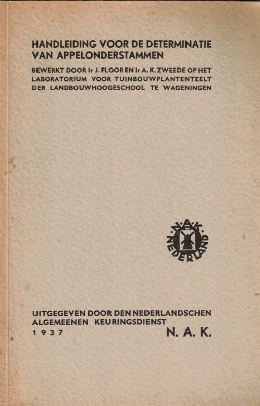 Handleiding voor de determinatie van appelonderstammen, bewerkt door ir. J. Floor en Ir. A.K. Zweede op het laboratorium voor Tuinbouwplantenteelt der Landbouwhoogeschool te Wageningen.