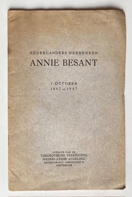| Titel: | Nederlanders herdenken Annie Besant 1 october 1847-1947 |