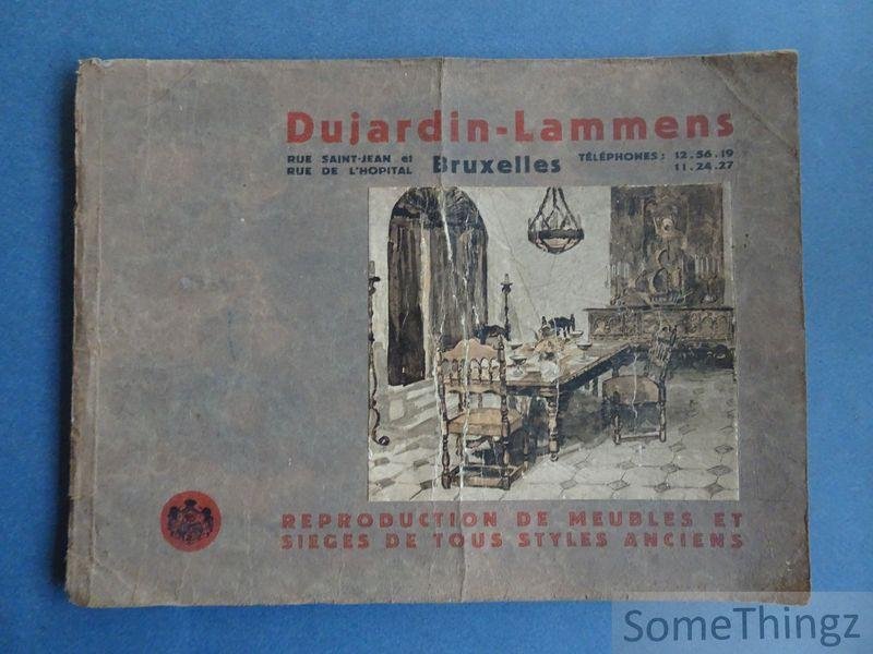 Ce catalogue publicitaire présente une sélection de meubles et de sièges reproduits dans une large variété de styles anciens. Publié à Bruxelles par la maison Dujardin - Lammens, l'ouvrage propose un répertoire visuel destiné aux professionnels du mobilier, aux artisans, aux décorateurs et aux amateurs d'art ancien. Chaque pièce est reproduite avec soin afin de permettre d'apprécier la richesse des formes traditionnelles et la diversité des influences stylistiques caractéristiques du mobilier historique.