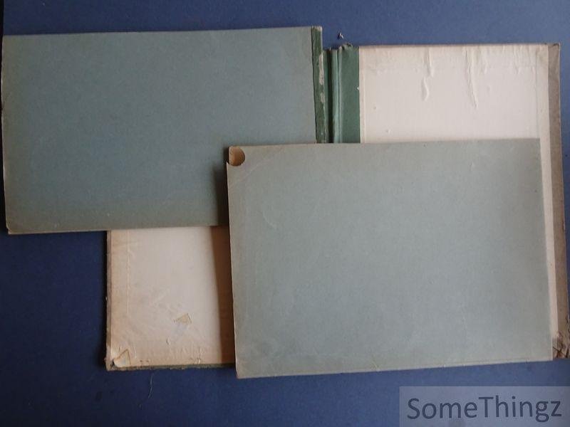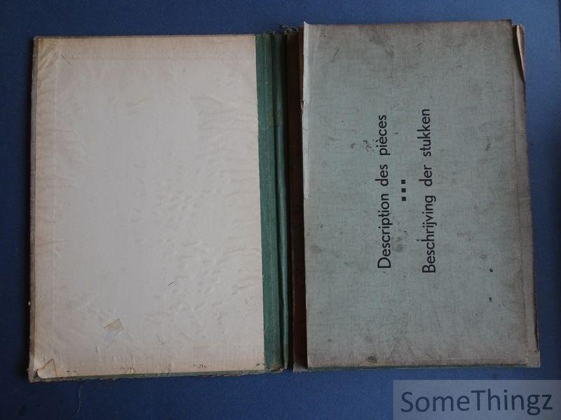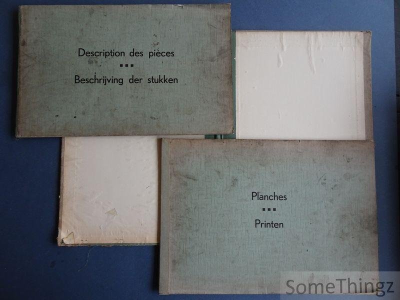 | Bijzonderheden: | Chemise à rabat avec 2 livres / map met 2 boeken, 124pp. + 28 planches (n/b) / afbeeldingen (z/w), 24.5x34.5cm., état acceptable (farde et livres tachés et bien usés, restaurations: les couvertures arrière des deux livres ont été remplacée... |