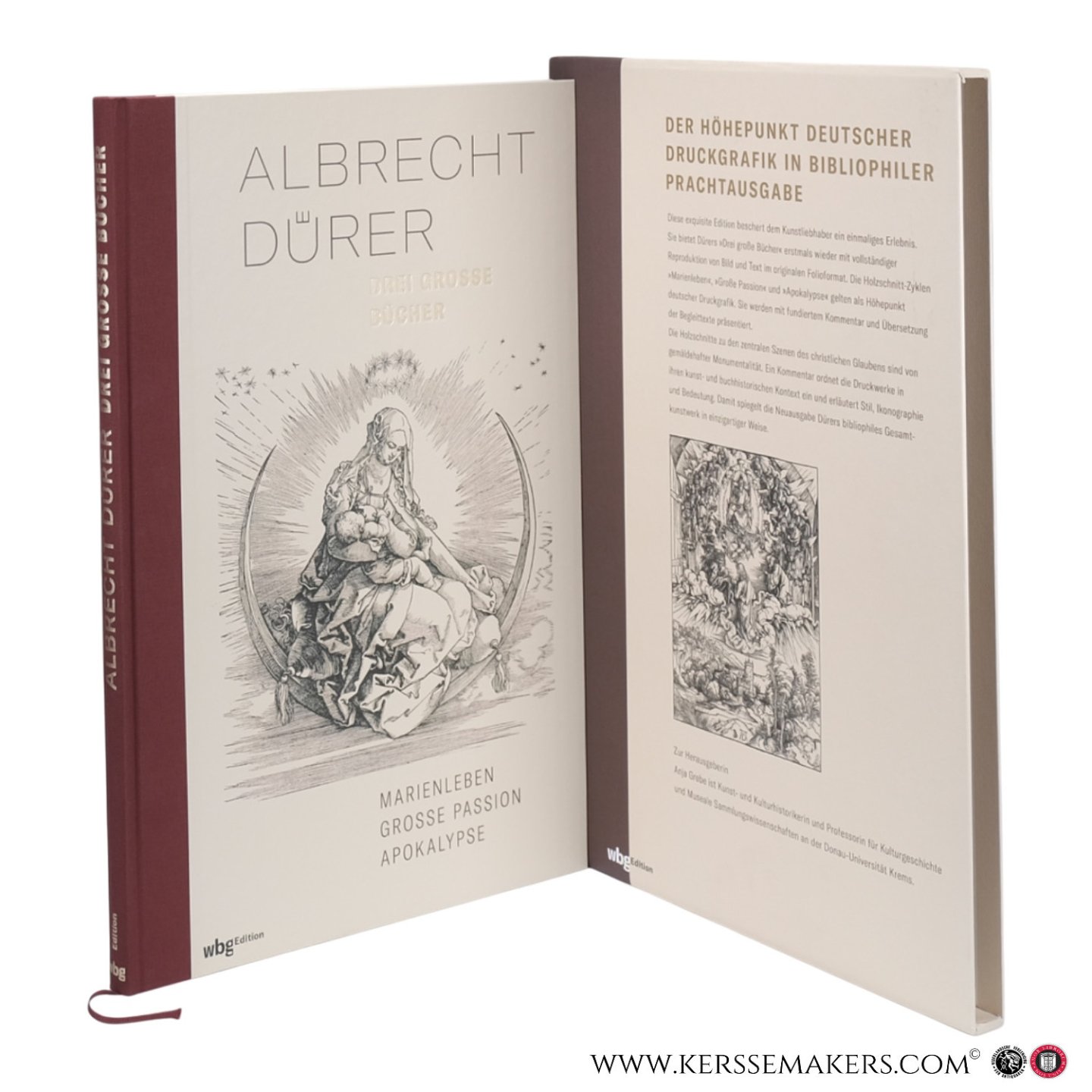 | Bijzonderheden: | 2020, 49 x 33 cm, half cloth hardcover in slipcase, 144 pages, Text in German, very good/ fine condition, see picture. Scholarly facsimile edition of Dürer’s three major woodcut series with commentary by Anja Grebe. Includes full |