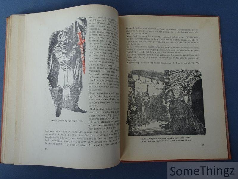 | Titel: | Ons volk in leven en streven. Verteld voor de Nederlandsche Jeugd. 1: Wat de grond vertelt. 2: De Goden der Germanen. 3: Zo leefden de Germanen. 4: De Romeinen komen. 5: Licht in de duisternis. 6. Karel en de Elegast. |