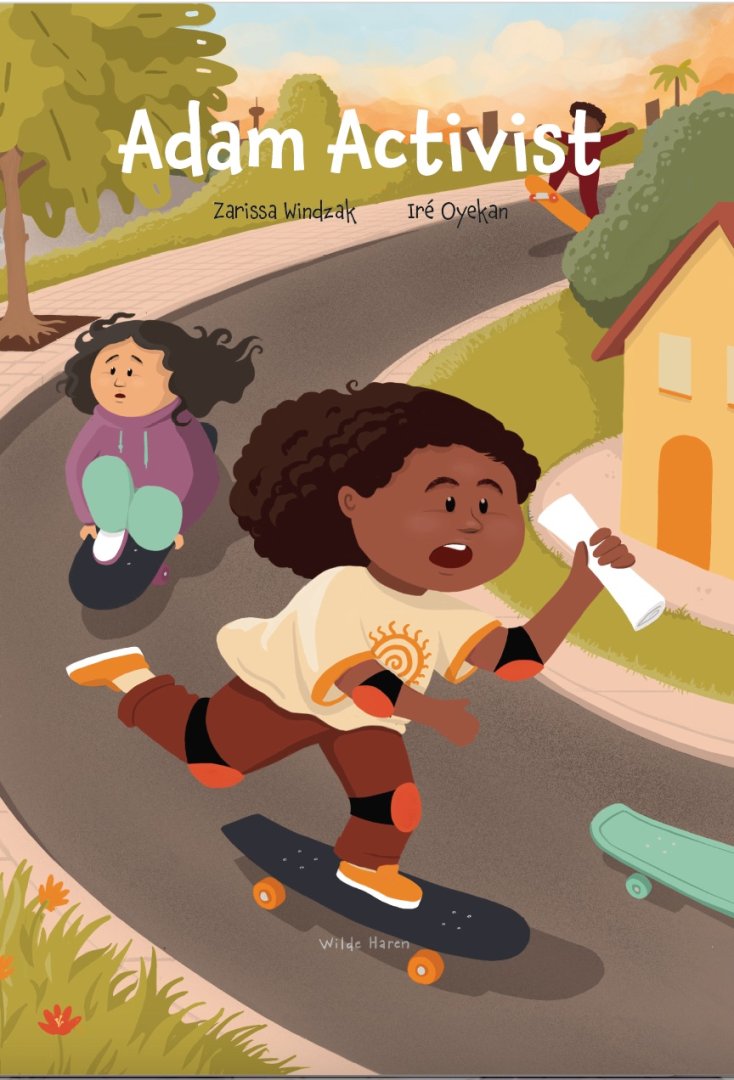 | Meer info: | Adam houdt van skateboarden. Hij kan grinden, droppen en sliden. Maar dan ontdekt hij dat het skatepark in zijn\nbuurt gaat sluiten om plaats te maken voor een nieuw flatgebouw. Adam komt meteen in actie. Hoe kan hij ervoor zorgen dat er naar hem wordt geluisterd? |