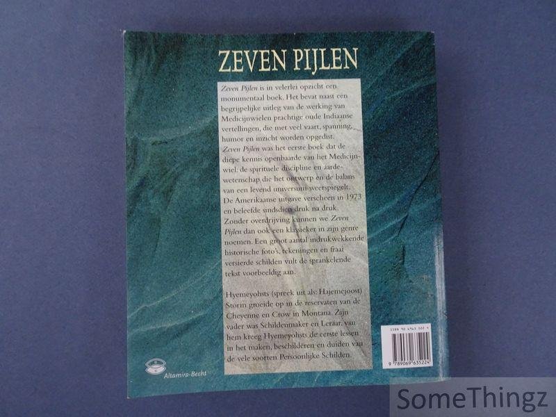 Zeven pijlen onthult de diepere betekenis van het Indiaanse medicijnwiel door middel van verhalen en tradities van vooral de Crow en Cheyenne. Het werk presenteert een leerproces dat de lezer initieert in de psychologie van het indiaanse medicijnwielritueel, waarbij oeroude wijsheid wordt gekoppeld aan inzichten over leven, relaties, gebruik van rituele objecten en spirituele balans. Door middel van narratieven en reflecties maakt de auteur toegankelijk hoe deze traditie functioneert als een instrument voor persoonlijke groei en begrip van cosmologische verbanden binnen inheemse culturen. Het boek Zeven pijlen / de diepe kennis van het medicijnwiel geopenbaard biedt een systematische reconstructie van de filosofie en rituele kennis van de Noord-Amerikaanse Plainsstammen, met expliciete aandacht voor de Crow en Cheyenne. Door middel van zeven narratieven die corresponderen met symbolische pijlen binnen het medicijnwiel, presenteert Hyemeyohsts Storm een psychologisch en spiritueel kader dat traditioneel is ingebed in de wereldbeelden van deze inheemse culturen. De tekst behandelt kosmologie, rituele praxis, betekenisgeving van symbolen en de toepassing van deze wijsheid in hedendaagse contexten van zelfreflectie en levensrituelen. Illustraties en vertalingen van primaire mythologische verhalen ondersteunen de interpretatieve teksten en faciliteren de lezer in het begrijpen van de dynamiek tussen individuele psyche en collectieve culturele structuren. De inhoud combineert antropologische beschrijving met interpretatief commentaar en biedt een hermeneutisch gereedschap voor de studie van medicijnwieltradities en hun psychospirituele betekenis binnen zowel historische als moderne perspectieven. Hyemeyohsts Storm (Vincent LaDuke, 1900-1990) was een schrijver van Lakota-generatie met inheemse wortels, bekend om zijn pogingen om Noord-Amerikaanse Indiaanse spirituele tradities toegankelijk te maken voor westers publiek. Zijn werk, waaronder Seven Arrows, wordt gezien als een vroege en invloedrijke poging om het medicijnwielritueel en andere inheemse wijsheden via literair proza en symbolische rechtstreekse vertellingen te presenteren. Storm?s teksten zijn vaak geciteerd binnen spirituele, antropologische en psychologische literatuur over traditionele Amerikaanse Indiaanse rituelen en filosofieën. Zijn werk balanceert tussen respectvolle reconstructie en creatieve interpretatie van orale tradities.