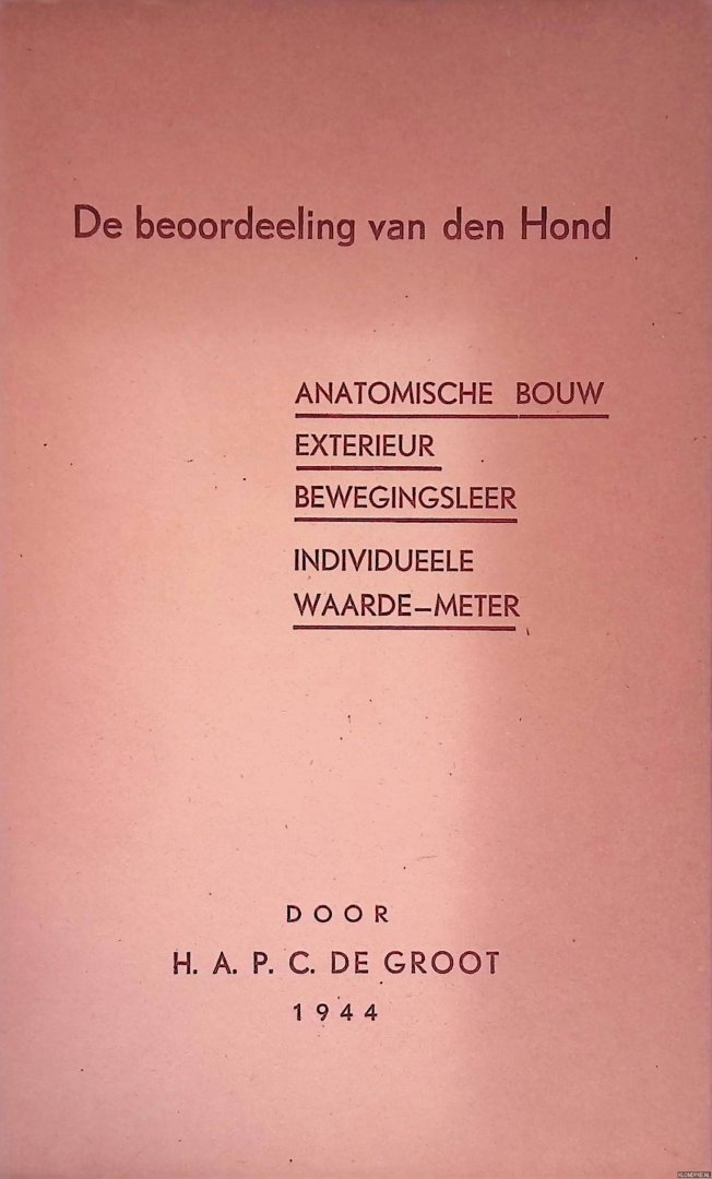 Groot, H.A.P.C. de - De beoordeling van den hond: Anatomische b