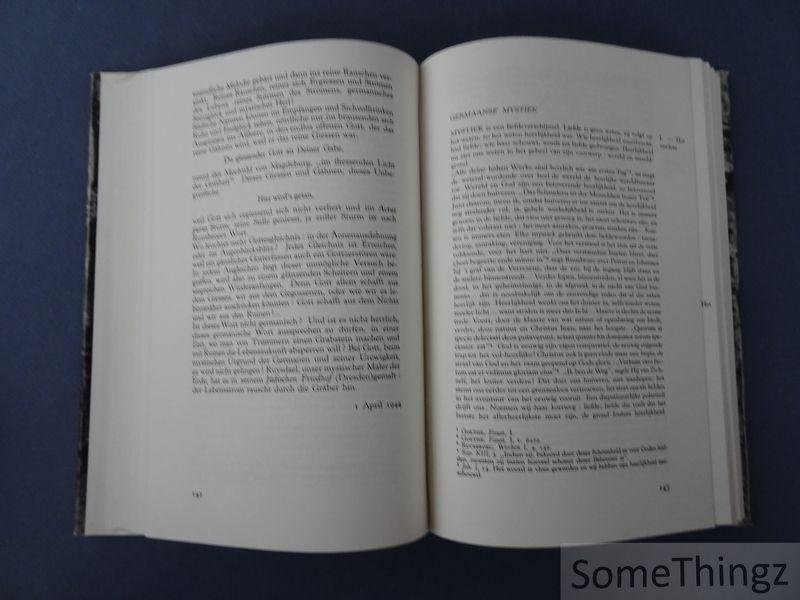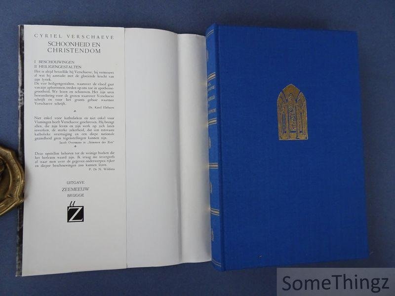 Inhoud: Deel 1: beschouwingen (het mysterie / poëzie der psalmen / schoonheid in het evangelie / de Kruisboom / Vlaamse mystiek / Germaanse mystiek / over christelijke kunst / het christelijk kunstwerk / wensingen in de kunst). Deel 2: heiligengestalten (Thomas van Aquino / dichter Johannes a Crce / Franciscus van Assisie / Eeuwig leven van Augustinus). In Schoonheid en christendom onderzoekt Cyriel Verschaeve de relatie tussen esthetiek en religieuze ervaring. Het werk analyseert hoe het christelijk geloof het begrip schoonheid beïnvloedt en omgekeerd hoe schoonheid kan dienen als uitdrukking van spirituele waarden en devotie. De auteur combineert filosofische, theologische en literaire inzichten en biedt een brede interpretatie van kunst en religie in het christelijk Westen. Het boek biedt een systematische studie van de concepten schoonheid en religie vanuit een katholiek-christelijk perspectief. Verschaeve behandelt de historische evolutie van esthetische theorieën en hun verwevenheid met christelijke kunst, liturgie en spirituele praktijk. Centraal staat de analyse van hoe het christendom esthetische waarden heeft geïncorporeerd in architectuur, beeldhouwkunst, schilderkunst en literatuur, en hoe deze uitingen zowel devotie als ethische en intellectuele contemplatie stimuleren. Het werk combineert theoretische reflectie met concrete voorbeelden van kunst en cultuurgeschiedenis, en bespreekt de pedagogische, liturgische en morele dimensies van schoonheid. Door een brede historische en culturele context te bieden, dient het boek zowel als academische studie als spiritueel commentaar op de betekenis van schoonheid binnen het christendom. Cyriel Verschaeve (1874?1949) was een Vlaams priester, schrijver en dichter, bekend om zijn literaire werk en zijn bijdragen aan religieuze en culturele reflecties. Zijn oeuvre combineert esthetische gevoeligheid met theologische en nationale overwegingen. Verschaeve was actief in katholiek intellectueel leven in België en leverde bijdragen aan het discours rond kunst, cultuur en christelijke spiritualiteit.