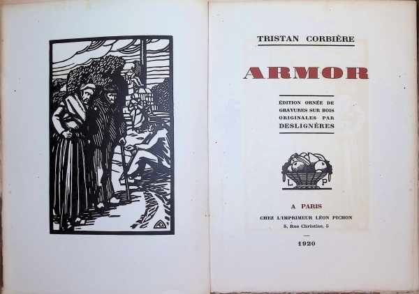 Zachte kaft met omslag: Goed, 23 x 17 cm, 58 + tabel pp., Frans, 1e editie, illustraties: editie versierd met originele houtsneden door Deslignères, staat van het boek: Zeer goed. Ex. nr. 102/440 op velin papier van de papierfabrieken van Arches.