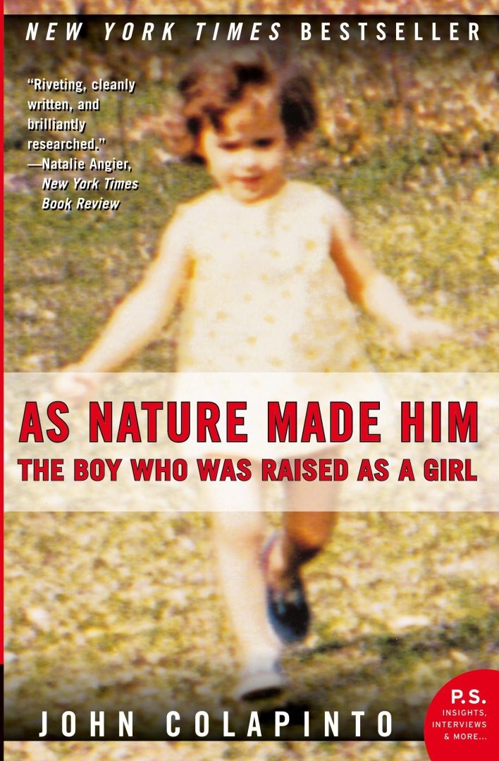 NEW YORK TIMES BESTSELLER\n\"We should aspire to Colapinto's stellar journalist example: listening carefully to the circumstances of those who are different rather than demanding that they conform to our own.\" --Washington Post\n\nThe true story about the \"twins case\" and a riveting exploration of medical arrogance, misguided science, societal confusion, gender differences, and one man's ultimate triumph\nIn 1967, after a twin baby boy suffered a botched circumcision, his family agreed to a radical treatment that would alter his gender. The case would become one of the most famous in modern medicine--and a total failure. The boy's uninjured brother, raised as a boy, provided to the experiment the perfect matched control. As Nature Made Him tells the extraordinary story of David Reimer, who, when finally informed of his medical history, made the decision to live as a male.\nWriting with uncommon intelligence, insight, and compassion, John Colapinto sets the historical and medical context for the case, exposing the thirty-year-long scientific feud between Dr. John Money and his fellow sex researcher, Dr. Milton Diamond--a rivalry over the nature/nurture debate whose very bitterness finally brought the truth to light. \nA macabre tale of medical arrogance, it is first and foremost a human drama of one man's--and one family's--amazing survival in the face of terrible odds.