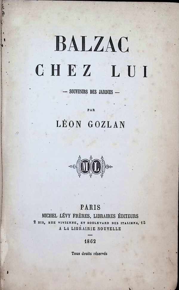Léon Gozlan - Balzac Chez Lui - souvenirs des Jardies