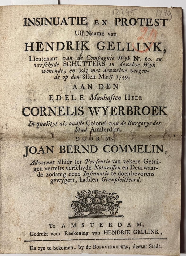 [legal Amsterdam] - Military Legal 1749 | Insinuatie en protest