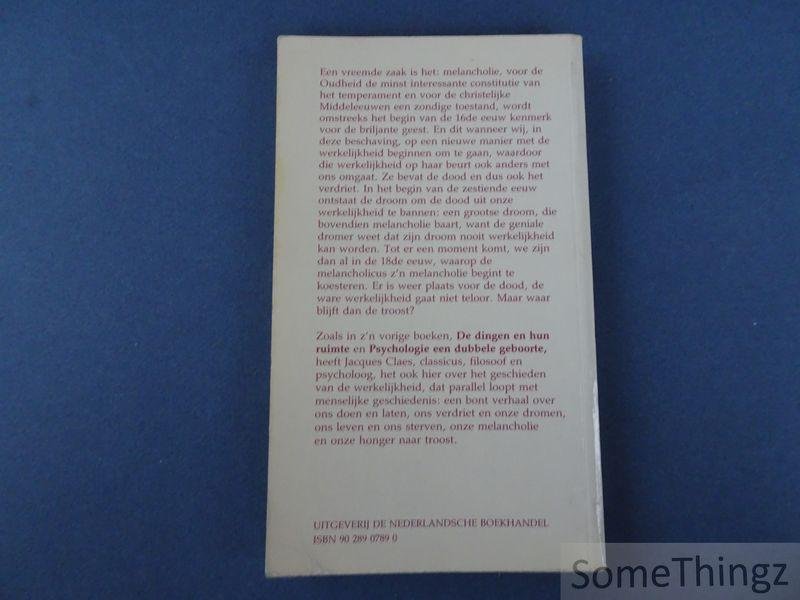 De wieg van het verdriet is een filosofisch-psychologische beschouwing over het fenomeen melancholie en de menselijke zoektocht naar troost. Jacques Claes onderzoekt in essayvorm hoe verdriet, melancholie en existentiële zwaarmoedigheid door de geschiedenis heen vorm hebben gekregen in cultuur en denken, en hoe deze ervaringen verbonden zijn met onze perceptie van werkelijkheid, tijd en afstand. Het werk biedt geen louter psychologische analyse maar integreert historische, filosofische en culturele perspectieven op verdriet als een diep menselijk en blijvend thema. Het boek bestaat uit een reeks essays waarin Claes de betekenis van melancholie en verdriet traceert vanuit de renaissance tot de moderne tijd. Centraal staat de menselijke relatie tot de wereld en de manier waarop uiteenlopende culturen en tijden verdriet hebben ervaren en uitgedrukt. Claes behandelt historische beelden en teksten, waaronder verwijzingen naar kunst zoals Dürer's Melencolia I, en betrekt filosofische inzichten over de balans tussen denken, voelen en het ervaren van verlies. Het werk combineert culturele geschiedenis, existentiële reflectie en persoonlijke interpretatie in een thematische exploratie van melancholie, verdriet en troost. Jacques Claes (geboren 1929) is een Vlaamse filosoof, cultuurhistoricus en essayist. Hij was hoogleraar aan de Universitaire Faculteiten Sint-Ignatius Antwerpen en publiceerde meerdere werken op het snijvlak van filosofie, psychologie en cultuurgeschiedenis, waaronder De dingen en hun ruimte (1970), Psychologie een dubbele geboorte (1980) en De wieg van het verdriet (1983). Claes staat bekend om zijn metabletische benadering, waarin hij de geschiedenis van de mens parallel laat lopen met die van de dingen om diepere inzichten in cultuur en existentie te verkrijgen.