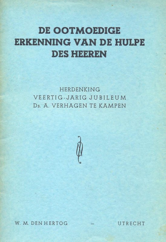 Den Hertog-Utrecht-z.j. 31 blz. Herd. 40-jarig ambtsjubileum ds. Verhagen Met toespraken van o.a. ds. M. Blok en ds. P. Honkoop |