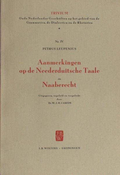 Meer info: Aanmerkingen op de Neederduitsche Taale en Naaberecht. Groningen, Wolters. 1958. 70 p. Pbck. l W.J.H. Caron (ed.). Trivium IV