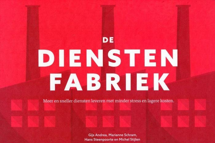 De Dienstenfabriek, meer en sneller diensten leveren met minder stress en lagere kosten. De schrijvers, Gijs Andrea, Marianne Schram, Hans Steenpoorte en Michel Stijlen, passen de beschreven methode elke dag toe in zeer uiteenlopende dienstverlenende omgevingen. Ze zijn gepassioneerd over de mogelijkheden die dit biedt aan Nederland Dienstenland en zijn vastberaden deze kennis en ervaring met zoveel mogelijk dienstverleners te delen. Dit boek is daar een eerste uiting van. Zij wensen u veel lees- en verbeterplezier. De auteurs trekken een verrassende parallel tussen het produceren van goederen en het verlenen van diensten. De lezer wordt op praktische wijze meegenomen in het toepassen van onder andere de Theory of Constraints (TOC) en het Toyota Production System. TOC is ontwikkeld door Eli Goldratt voor productie omgevingen. In De Dienstenfabriek valt op dat het 'productieproces' van ziekenhuizen, overheidsinstanties en zakelijke dienstverleners niet alleen onderling weinig verschillen toont, maar ook dat het verrassende overeenkomsten heeft met processen in organisaties die computers, vliegtuigen of levensmiddelen produceren. Op basis van die overeenkomsten gebruiken de schrijvers hun theoretische inzichten en hun praktische ervaring om stapsgewijs een significante verbetering van de prestatie van elke dienstverlener te schetsen.