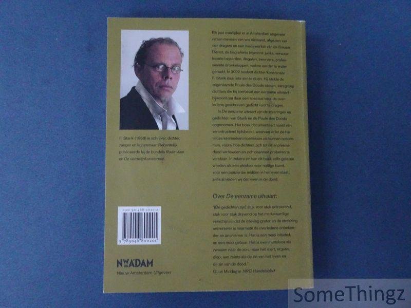 Elk jaar overlijden in Amsterdam ongeveer vijftien mensen van wie niemand, afgezien van vier dragers en een medewerker van de Sociale Dienst, de begrafenis bijwoont: junks, verwaarloosde bejaarden, illegalen, zwervers, professionele dronkenlappen. In 2002 besloot dichter/kunstenaar F. Starik daar iets aan te doen. Hij stelde de zogenaamde Poule des Doods samen, een groep dichters die bij toerbeurt een eenzame uitvaart bijwonen om daar een speciaal voor de overledene geschreven gedicht voor te dragen. In De eenzame uitvaart zijn de ervaringen en gedichten van Starik en de Poule des Doods opgenomen. In zekere zin kan dit boek zelfs gelezen worden als een pleidooi voor nuttige kunst, voor een poëzie die midden in het leven staat, zelfs al vinden wij dat leven in de dood.