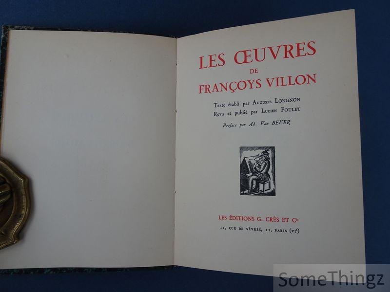 | Titel: | Les oeuvres de Françoys Villon. Texte établi par Auguste Longnon, revu et publié par Lucien Foulet, préface par Ad. van Bever. |
