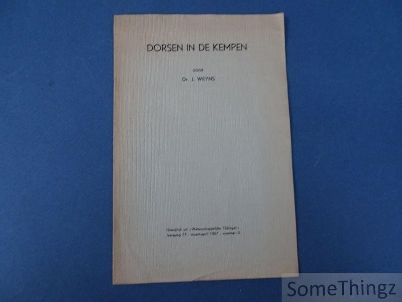 Overdruk uit "Wetenschappelijke Tijdingen", jaargang 17, maart-april 1957, nummer 3. De publicatie vormt een beknopte volkskundige studie over het dorsen als essentieel onderdeel van de landbouwcyclus in de Kempen. De auteur beschrijft de traditionele methoden waarmee graan werd gedorst, de gebruikte werktuigen en de organisatie van het werk binnen de agrarische gemeenschap. Daarbij wordt aandacht besteed aan de praktische uitvoering van het dorsproces, de seizoensgebonden arbeid en de sociale context waarin deze activiteiten plaatsvonden. Door de combinatie van beschrijvende tekst en illustraties biedt het werk inzicht in een landbouwpraktijk die een centrale rol speelde in de economie en het dagelijkse leven van het Kempische platteland, en draagt het bij aan de documentatie van materiele volkscultuur en agrarisch erfgoed. Jozef Weyns was een Belgische volkskundige en onderzoeker die gespecialiseerd was in materiele volkscultuur en landelijke tradities. Hij speelde een belangrijke rol in de studie van het plattelandsleven in Vlaanderen en publiceerde talrijke artikels en studies over ambachten, landbouwpraktijken en historische gebruiksvoorwerpen. Zijn werk vormde een belangrijke basis voor het onderzoek naar regionale volkscultuur en voor de museale documentatie van traditionele landbouwtechnieken.